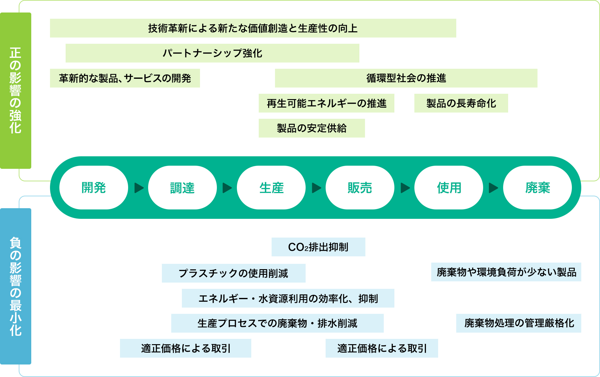 負の影響の最小化に繋がる取り組みをバリューチェーン全体でマッピング